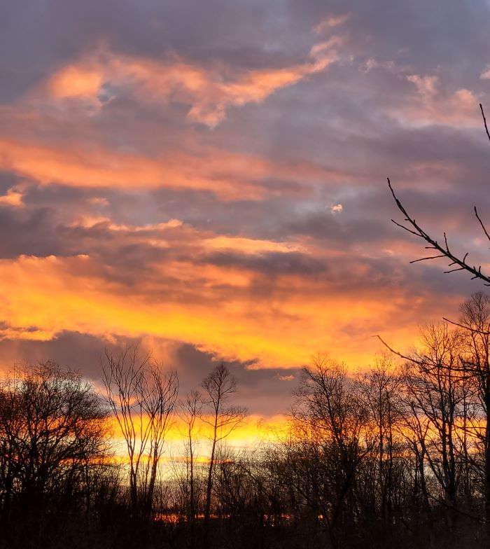 Last night’s sunset. A picture can’t do it justice. The camera makes it look more colorful. My eye saw more pink and blue.