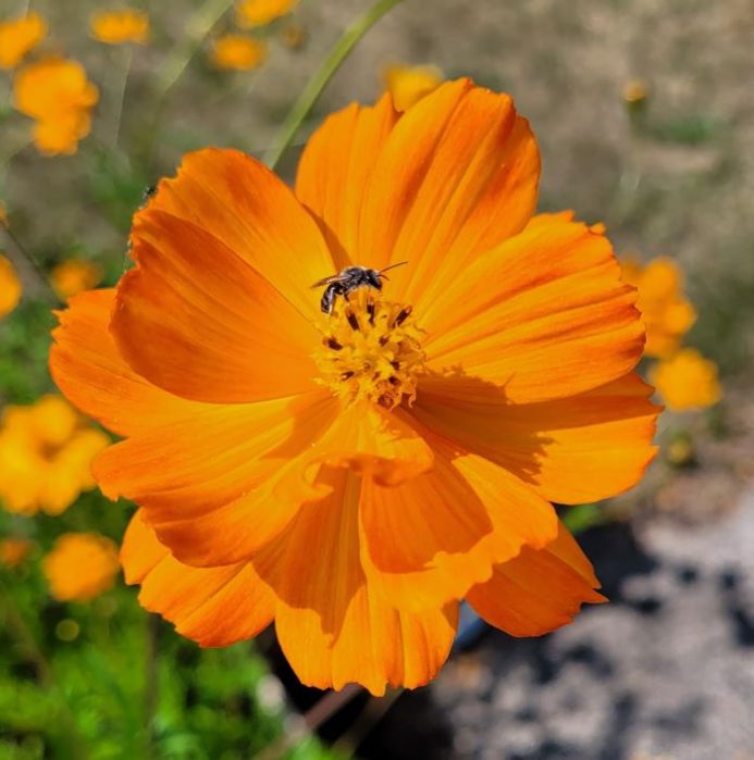 This pic was taken in August of last year. Some years back I borrowed a packet of sulfur cosmos from the library seed bank. The concept is to grow the plants and donate some seeds back to the library from the plants. I’ve been donating cosmos and other seeds back to the library for the past few years and plan on continuing the practice.