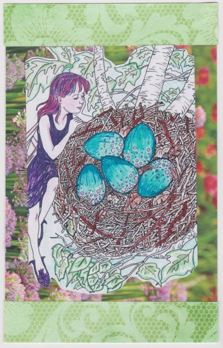 Stacey, just for the record, I did not draw that image. It’s from a coloring book. I colored it in, scanned it, had a hardcopy photo made of it, and cut around it, then added it to the collage. Happy it gave you the warm fuzzies (and wish I could claim the drawing!)