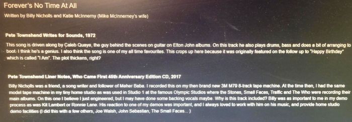 I’m glad I revisited this song. American Songwritersays, “Pete doesn’t even appear on … ‘Forever’s No Time at All’.” This is confirmed in the album liner notes by Pete: