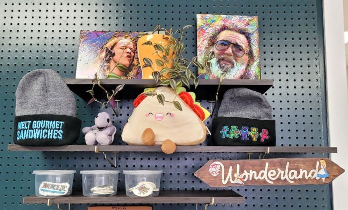 It seems that photo gallery doesn’t allow lengthy captions, so I’ll explain a few. The first 2 are displays at Melt, a new restaurant we went to this month. In addition to these the tables are decoupaged with neat stickers. The food is cheap in price and kind of blase’ in my opinion. That said, I was surprised by the number of people who showed up to get their pickup orders while we were there. Although I like the kitchy (sp?) decor, probably won’t go back.