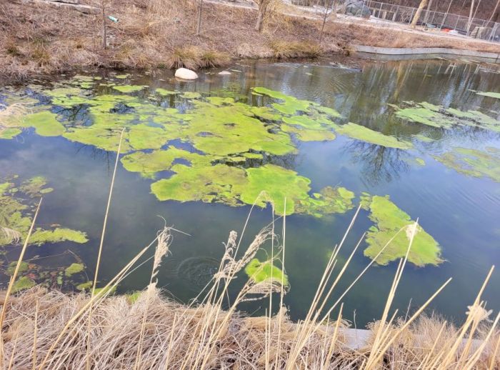 These are followed by 2 pics of one of the many ponds at fmg. This one is just after stepping outside out back. I thought the green clumps looked interesting. We wondered if we’d see the muskrats out yet, and sure enough one was gathering vegetation and swimming. Later, in another pond, we saw another muskrat (or it swam down creek and walked over?) There’s no reason to believe that there aren’t several muskrat families on the property. They remind me of the wetlands near my grandparents’ house growing up.