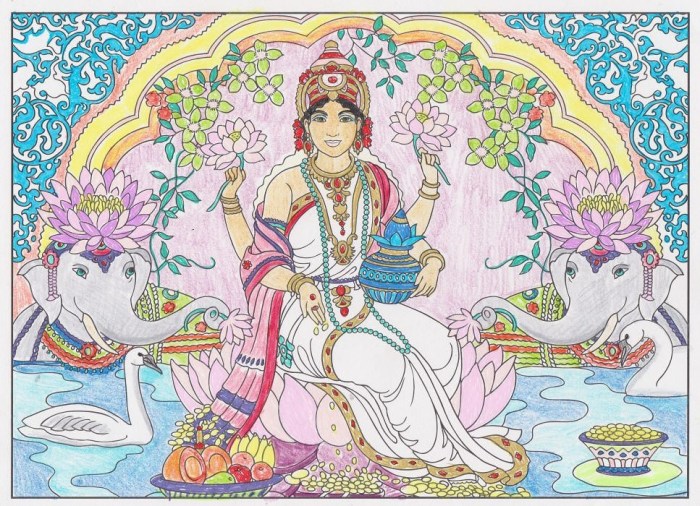 Lakshmi is a Living Goddess for the Hindu People. When I started looking for information on her, I quickly saw how much data is out on the internet about her. The idea of being able to sift through it all was daunting. I found one website that gives an excellent overview of who Lakshmi is, from her origin to the present. Please go here to read it. Wikipedia has a huge amount of info.