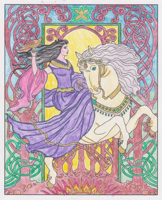 Rhiannon is connected to three mystical birds. The Birds of Rhiannon (Adar Rhiannon) appear in the Second Branch, in the Triads of Britain, and in Culhwch ac Olwen. In the latter, the giant Ysbaddaden demands them as part of the bride price of his daughter. They are described as “they that wake the dead and lull the living to sleep.” This possibly suggests Rhiannon is based on an earlier goddess of Celtic polytheism.