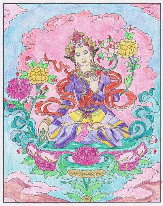 Her pleasant forms were popular amongst the Buddhists. Some of her forms are worshipped in both Hindu and Buddhist systems.