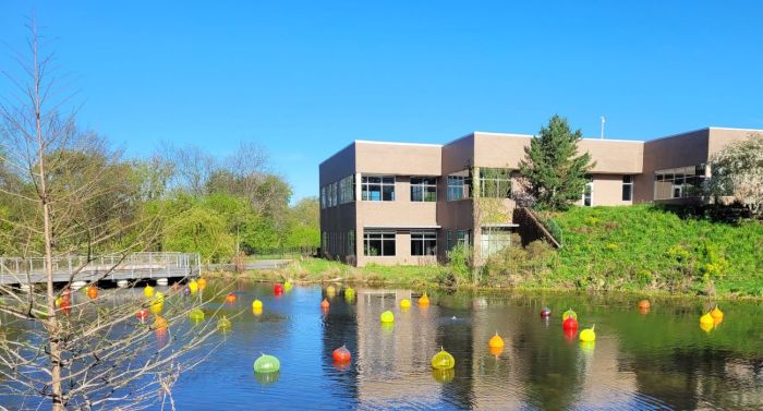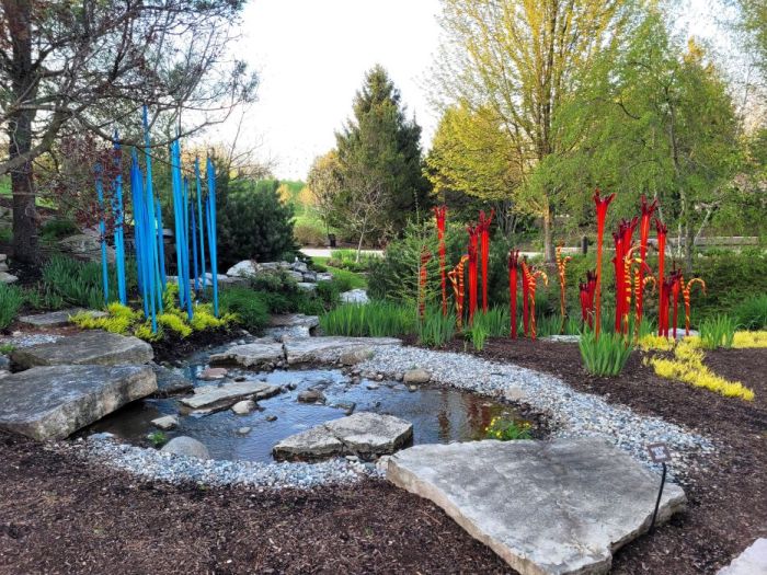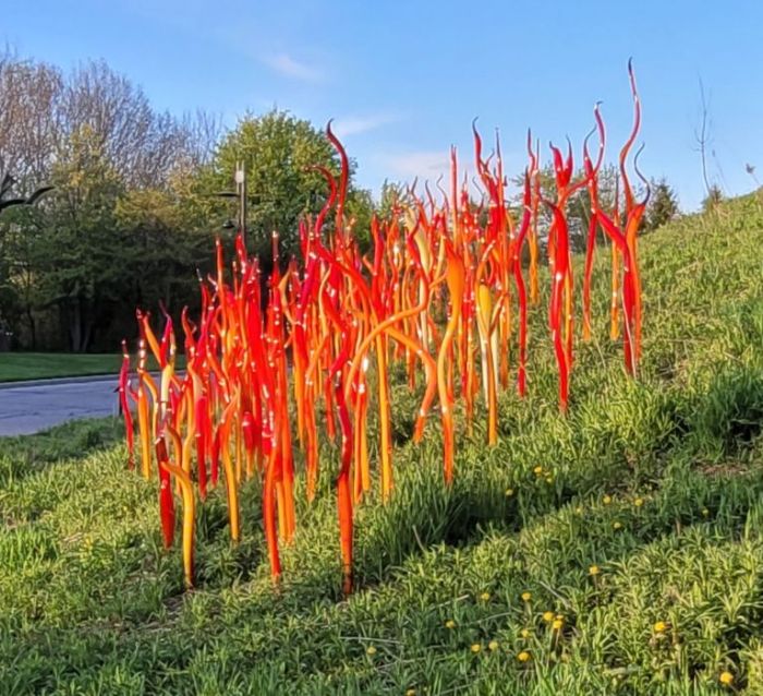 Even though Chihuly’s exhibit doesn’t open until May 2, there is plenty of it out and about on the grounds of Frederik Meijer Gardens and Sculpture Park. Tuesday was a beautiful day to walk around. Sunny and slightly chilly as the sun started going down.